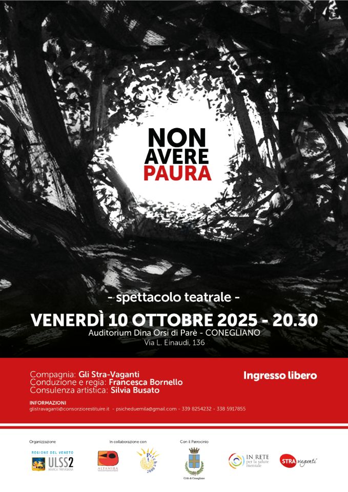 Il nuovo spettacolo "NON AVERE PAURA" del gruppo teatrale "Gli Stra-vaganti" messo in scena Venerdì 10 ottobre 2025 alle 20:30 presso l'auditorium Dina Orsi di Parè di Conegliano.